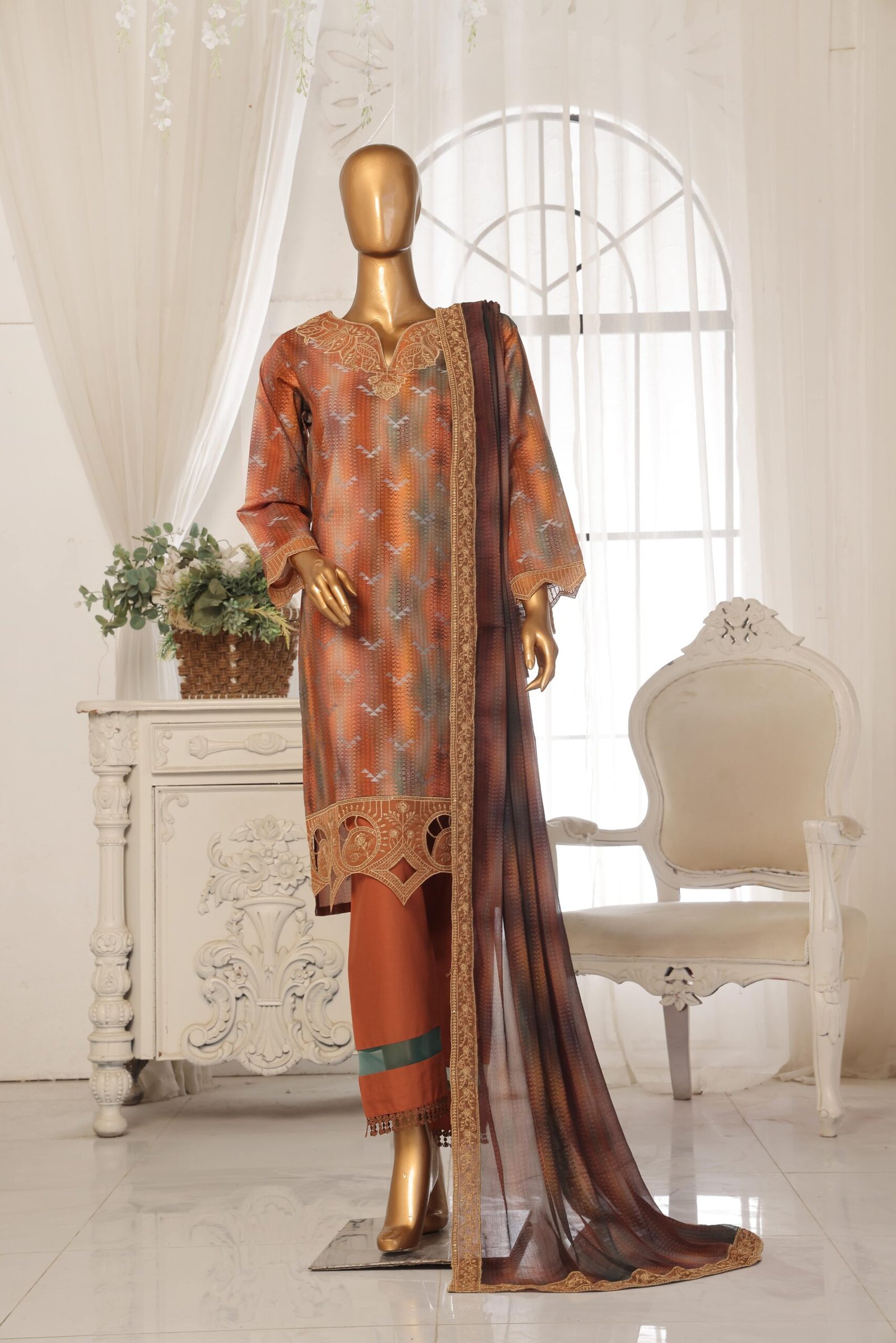 3 PIECE – EMBROIDERED JAQUARD LAWN SUIT